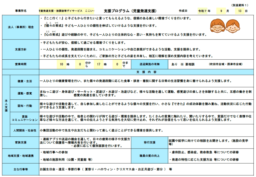支援プログラム(児童発達支援)