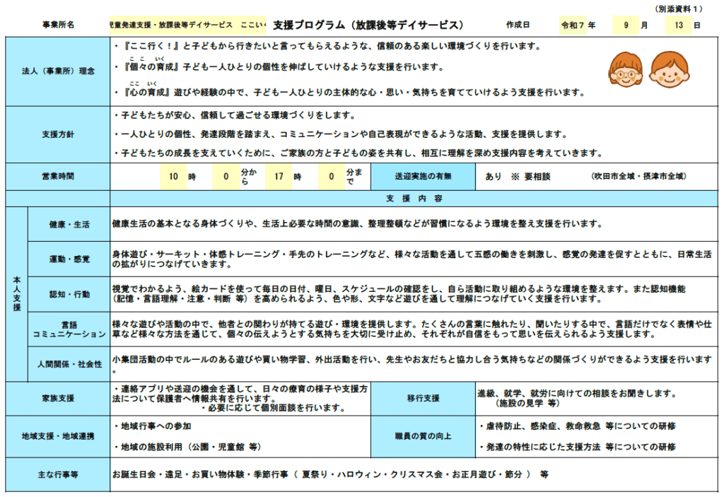 支援プログラム(放課後等デイサービス)